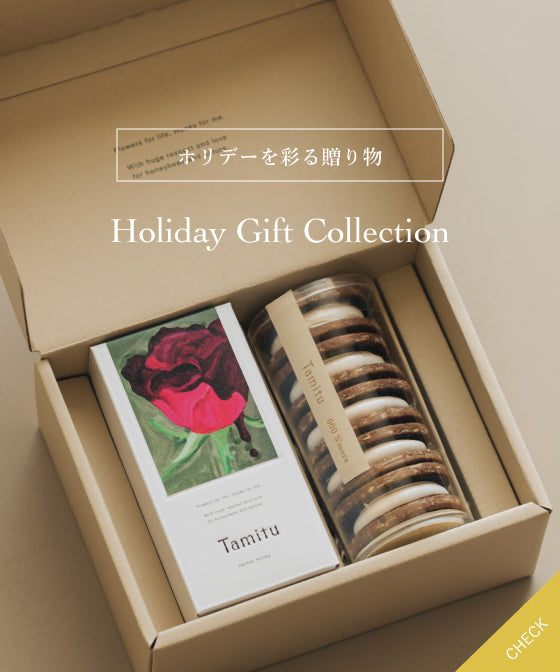 Tamituは冷たい飲みものにも素早く溶け、心地よい甘さと香りをプラスしてくれます。水100mlにティースプーン4杯(10g)が目安。