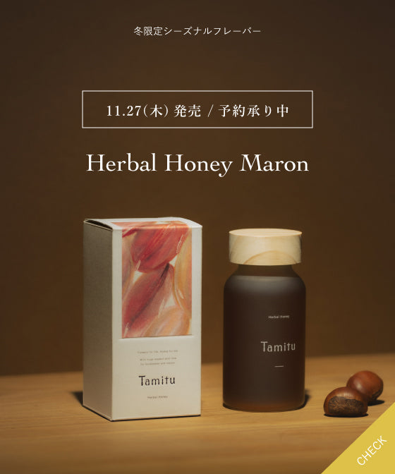 Tamituは冷たい飲みものにも素早く溶け、心地よい甘さと香りをプラスしてくれます。水100mlにティースプーン4杯(10g)が目安。